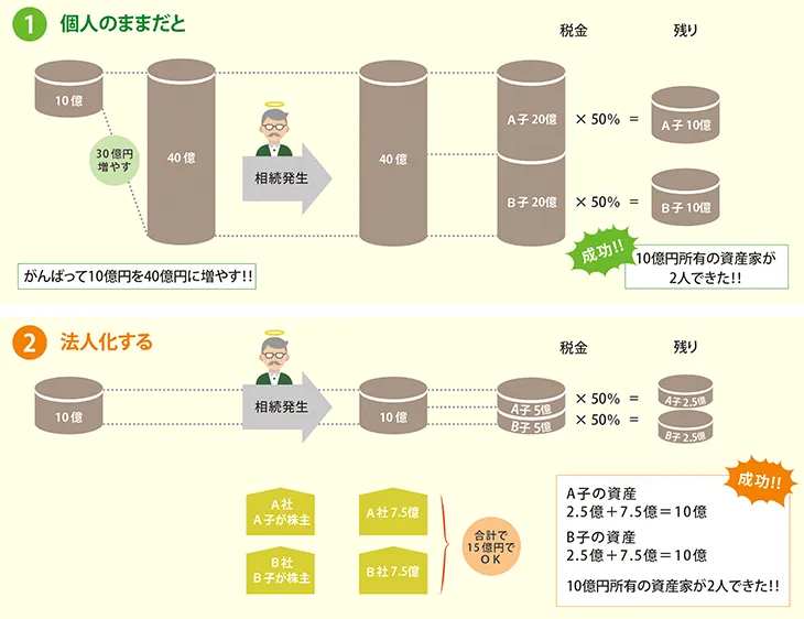 個人のままでは10億円を40億円になんとか頑張って増やしてから亡くなります。